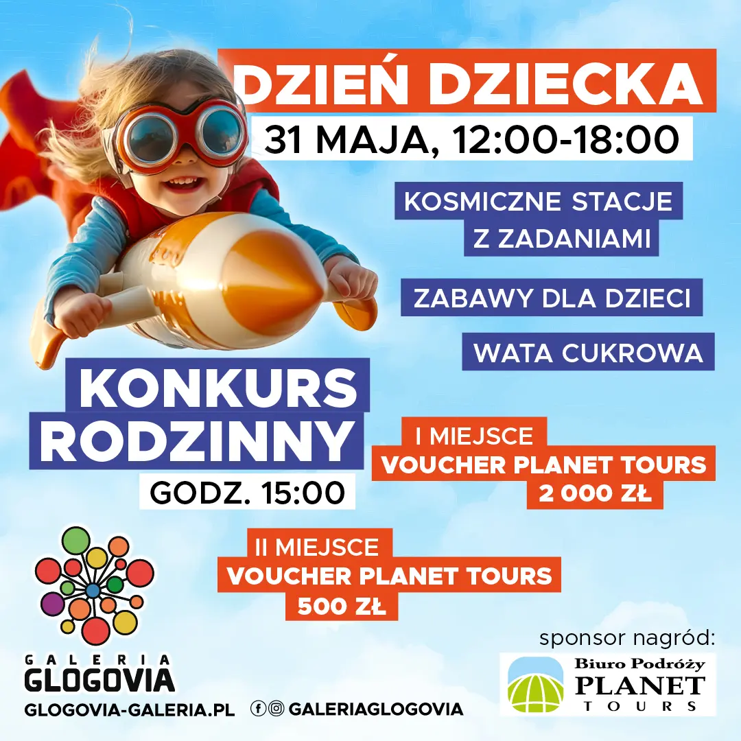31.05. Kosmiczny Dzień Dziecka w Galerii Glogovia! W godzinach od 12:00 do 18:00 na pasażu Galerii będą ustawione kosmiczne stacje z zadaniami. Gwaratnujemy moc zabawy dla dzieci i całej rodziny!