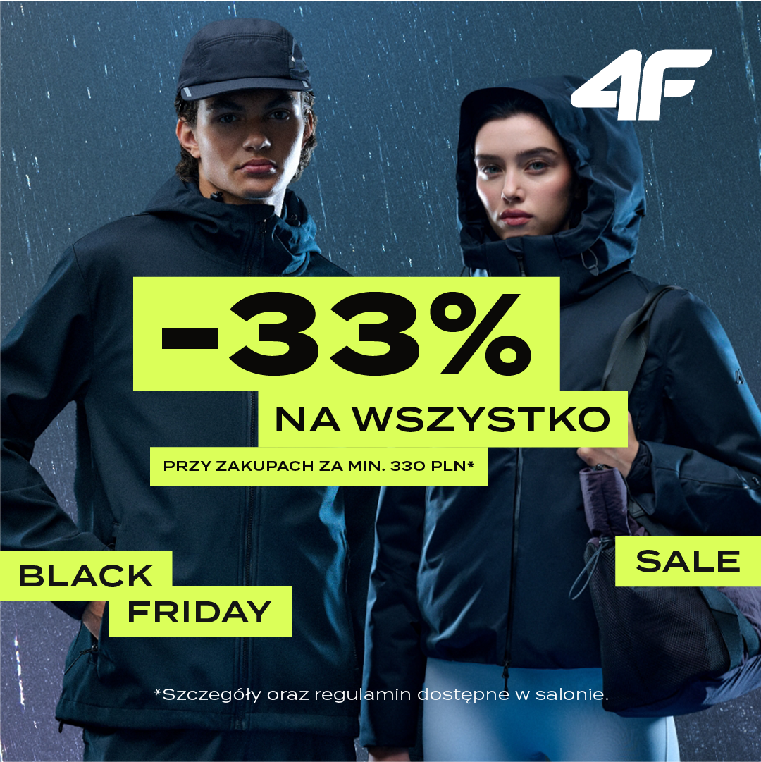 -33% NA WSZYSTKO PRZY ZAKUPACH ZA MIN.330 ZŁ od 21 listopada do 2 grudnia występującą w sklepach stacjonarnych 4F.