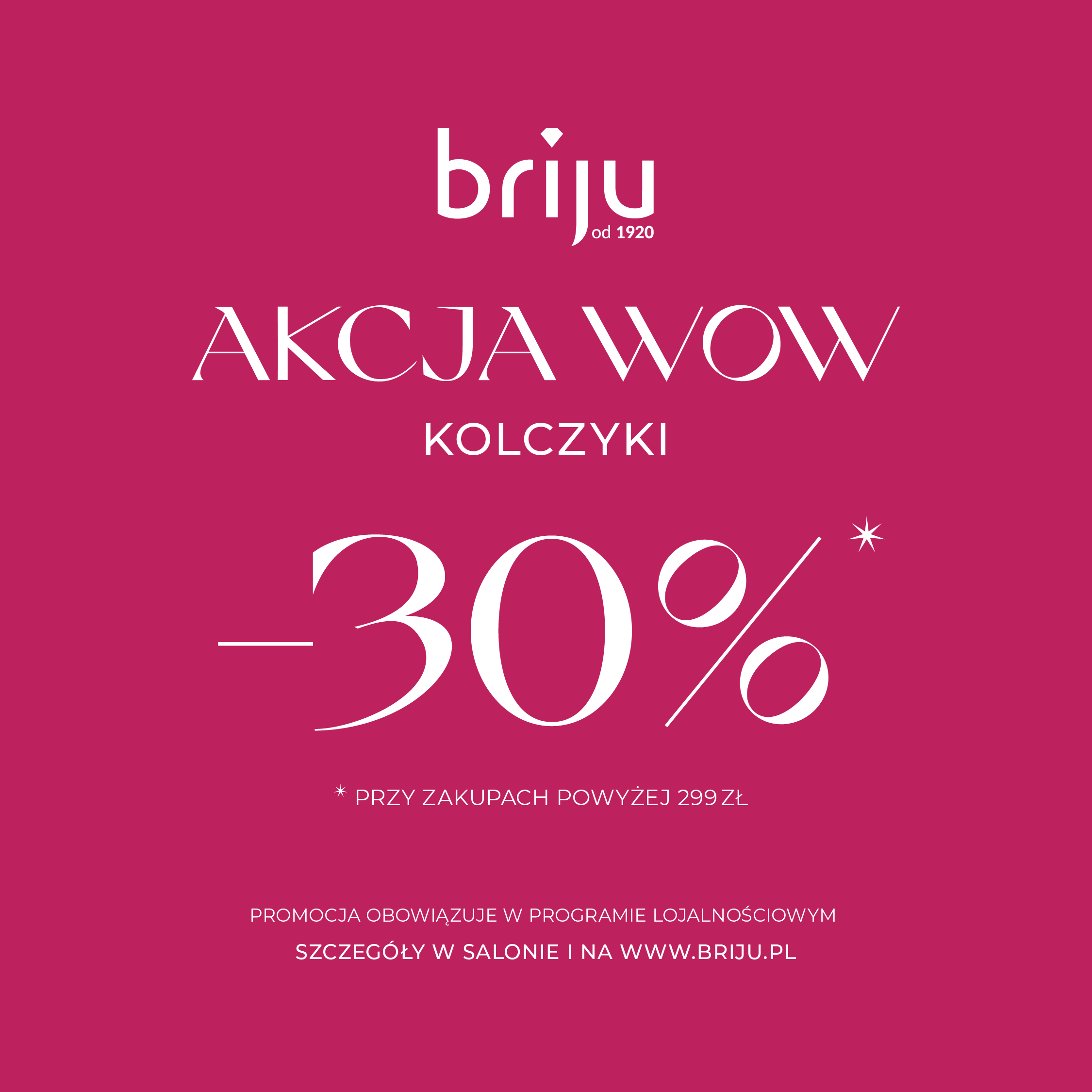 AKCJA WOW w Briju!! Kolczyki-30% przy zakupach powyżej 299 zł!