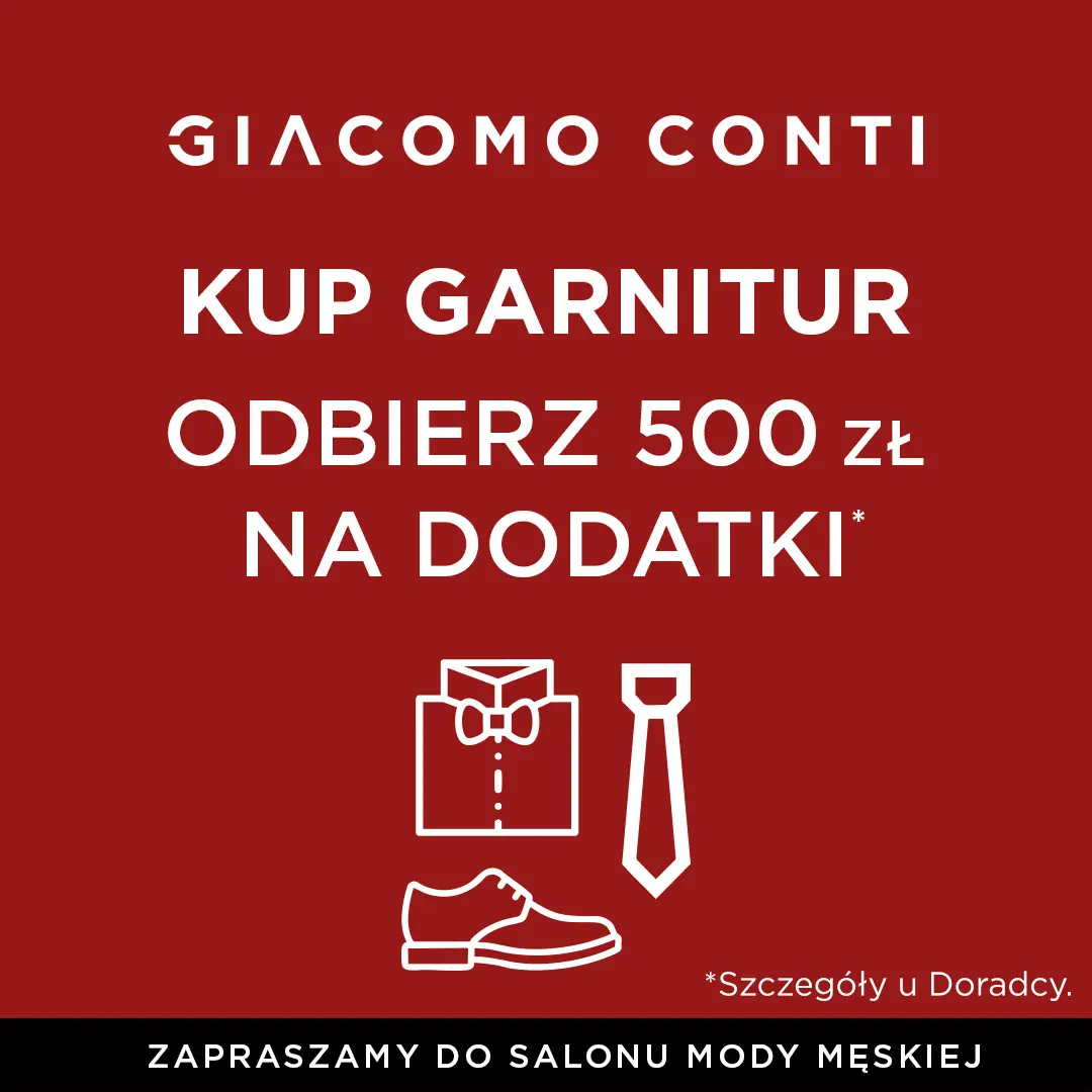 Kup garnitur wełniany za min. 2500 zł, a dodatki o wartości od 500 zł zgarniesz W PREZENCIE! Koszula, krawat, poszetka, polo lub buty? Wybierz sam – my dorzucimy je do garnituru. Promocja tylko w salonach stacjonarnych