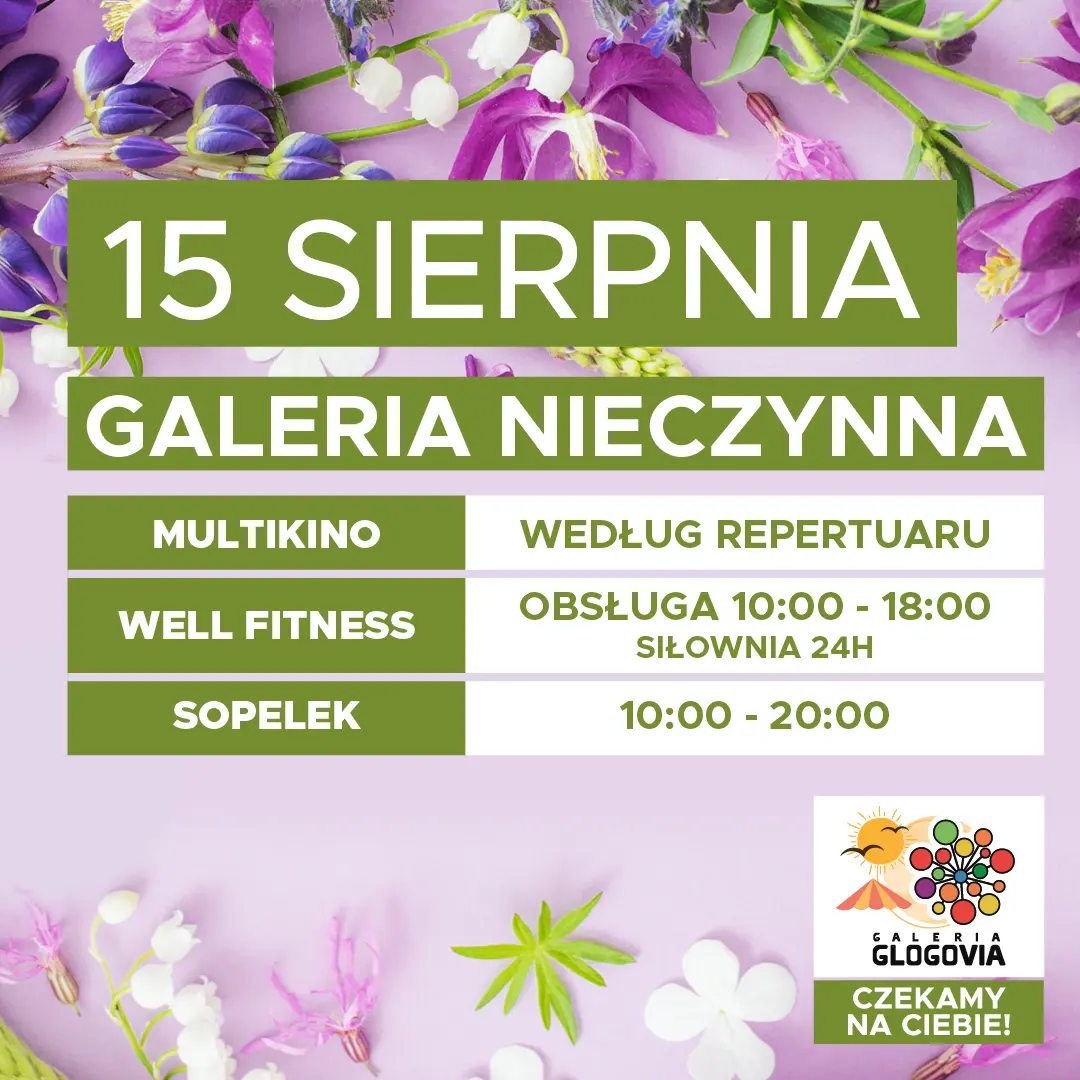 Godziny pracy 15.08.25 w Galerii Glogovia.