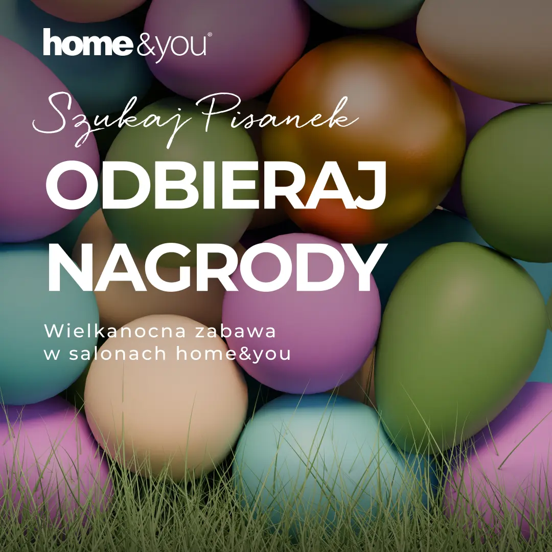 Szukaj pisanek, odbieraj nagrody! Od 7 do 13 kwietnia w salonach home&you szukaj ukrytych pisanek-niespodzianek i odbieraj wyjątkowe rabaty oraz vouchery na zakupy! A jeśli znajdziesz „złote jajko”, czeka na Ciebie nagroda specjalna!