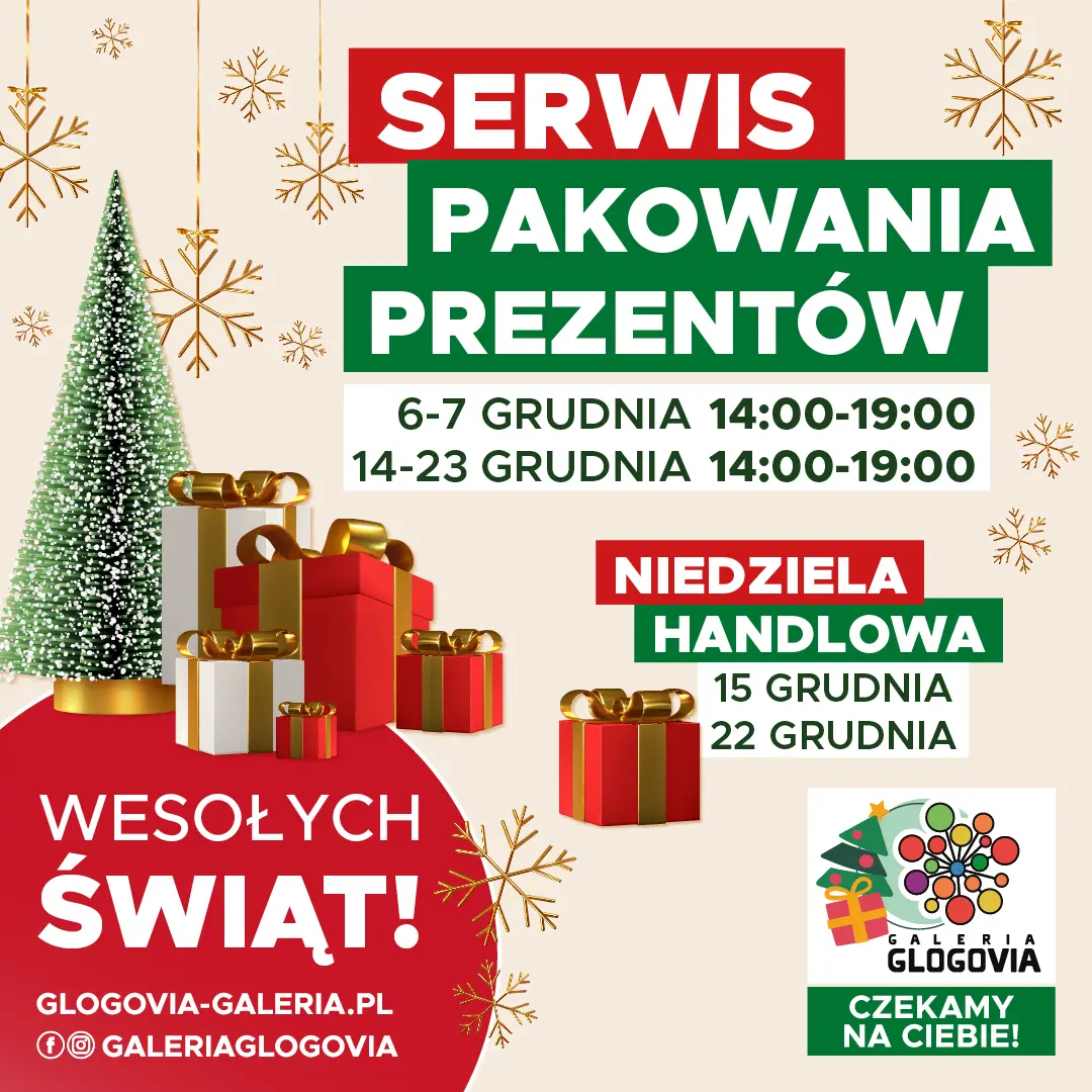 Nie masz czasu na pakowanie prezentów a chcesz żeby wyglądały wyjątkowo! Skorzystaj od 6.12 z naszej usługi w Galerii Glogovia. Serwis przy salonie Hebe!