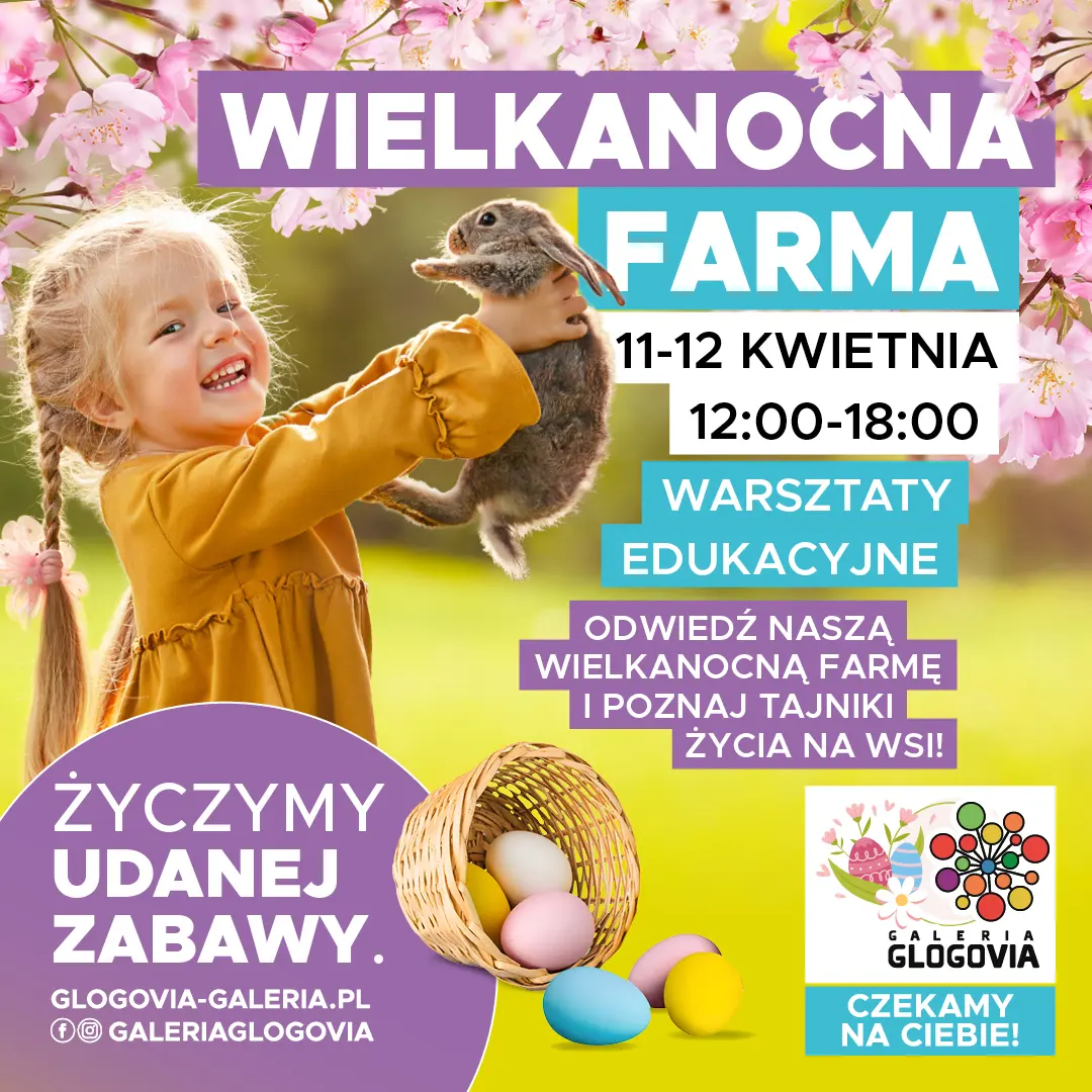 W dniach od 11 do 12 kwietnia w godzinach 12:00 do 18:00 na pasażu w Galerii pojawi się Wielkanocna Farma. Unikalna, przedświąteczna atrakcja dla dzieci i całej rodziny. Warsztaty edukacujne gry i zabawy!